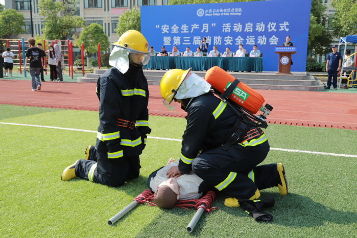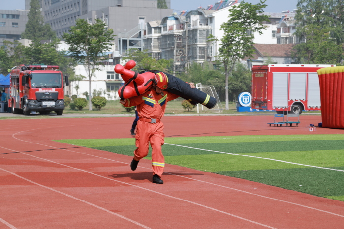 本次消防安全运动会设置“急速救援”、“争分夺秒”、“穿越火线”赛项,比赛内容结合消防器材使用、应急逃生等场景,将灭火救援和逃生自救等技能融入项目中。