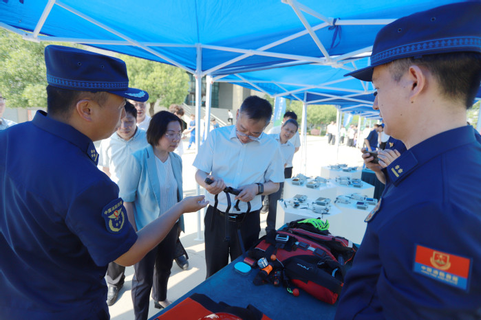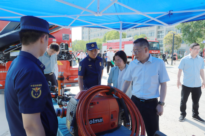 活动期间,与会领导前往应急救援装备展示区参观指导。展示区集中呈现了学校高水平专业实训室建设成果与消防救援队伍现代化装备建设成效,此次装备联展既检验了我校专业建设与行业发展的高度契合,也为深化“校地共建、人才共育”机制奠定了坚实基础。