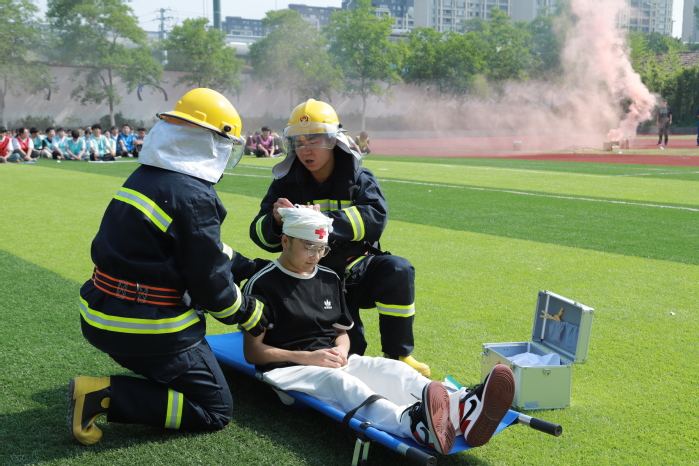 安全是发展的前提,技能是安全的保障。为充分展现我校“教、学、练、战一体化”的安全育人成果,在消防救援实战演习中,“苏小安”应急救援志愿服务队的队员们通过模拟火情警报、应急疏散、伤员救援、火灾扑灭等场景,让参加活动的师生在“沉浸式”体验中掌握遇到火灾时应具备“科学救援、专业处置”的专业知识与实战能力。